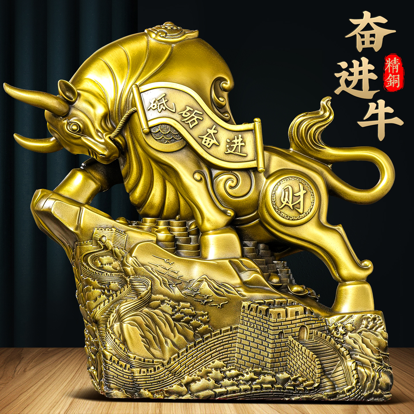 大号铜牛摆件奋进牛气冲天生肖牛工艺品黄铜招财旺市牛办公室装饰