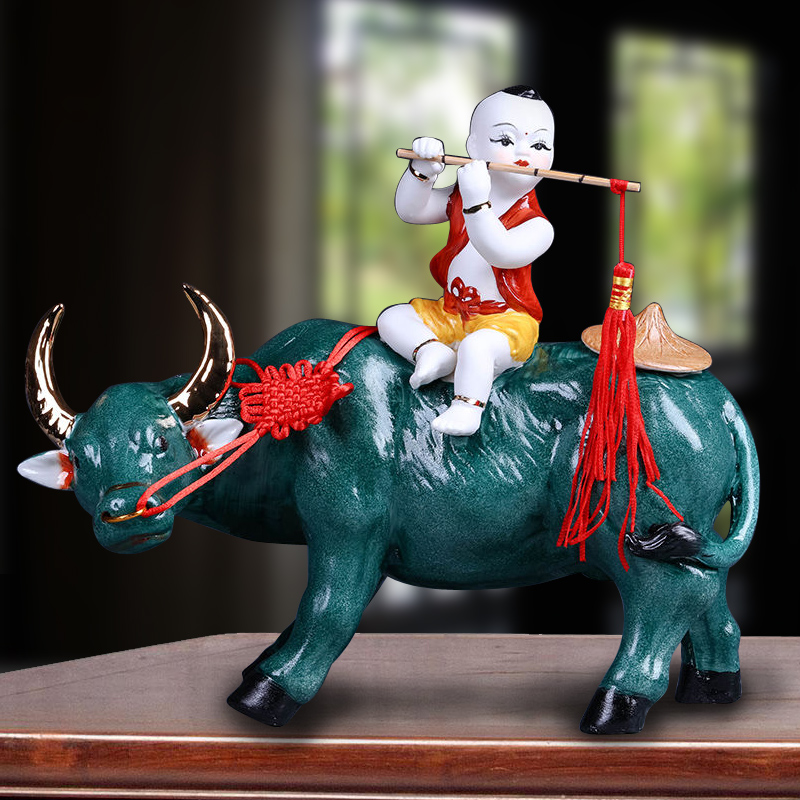 景德镇陶瓷牧童骑黄牛工艺品客厅家居摆件风水招财镇宅装饰品丰收