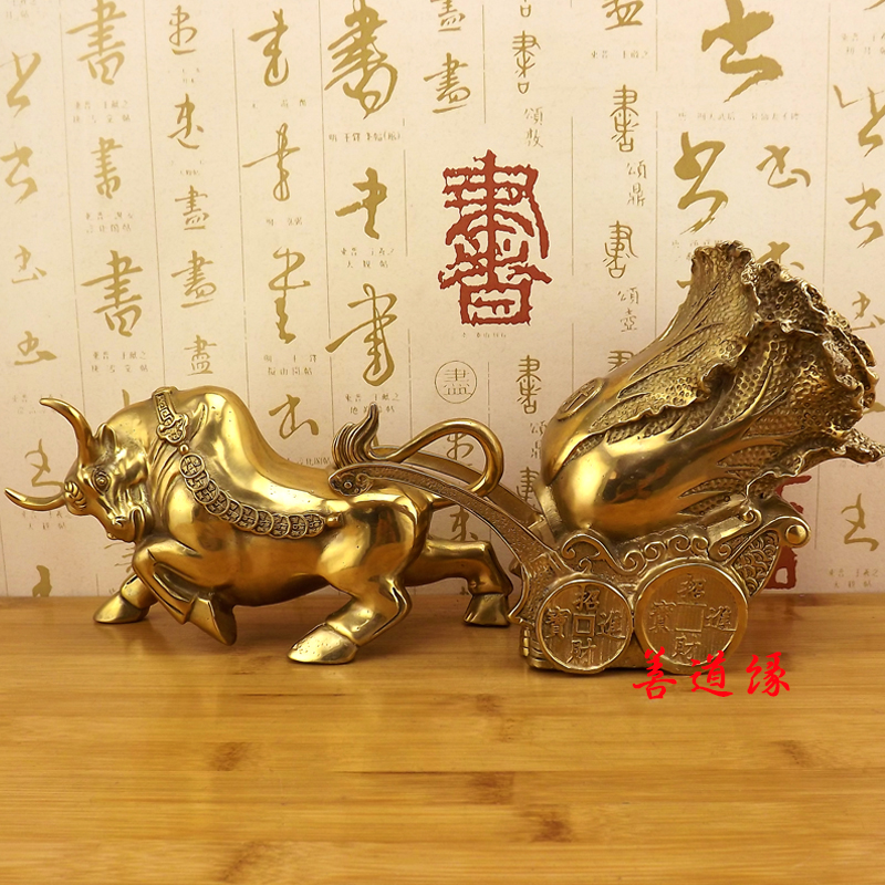 大号纯铜牛拉白菜黄铜牛生肖牛铜牛金钱牛办公室招财牛工艺品摆件