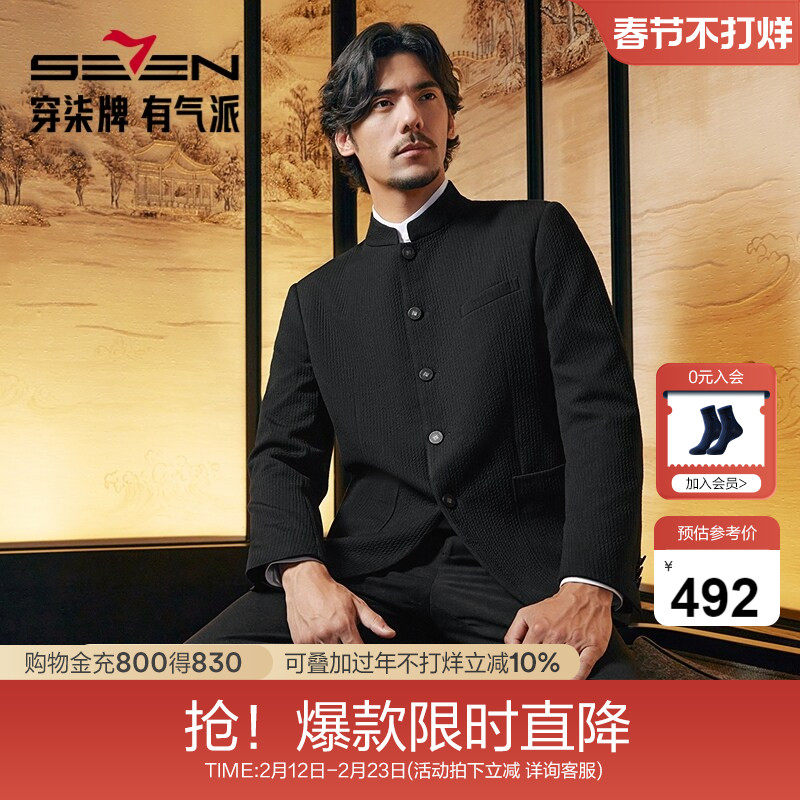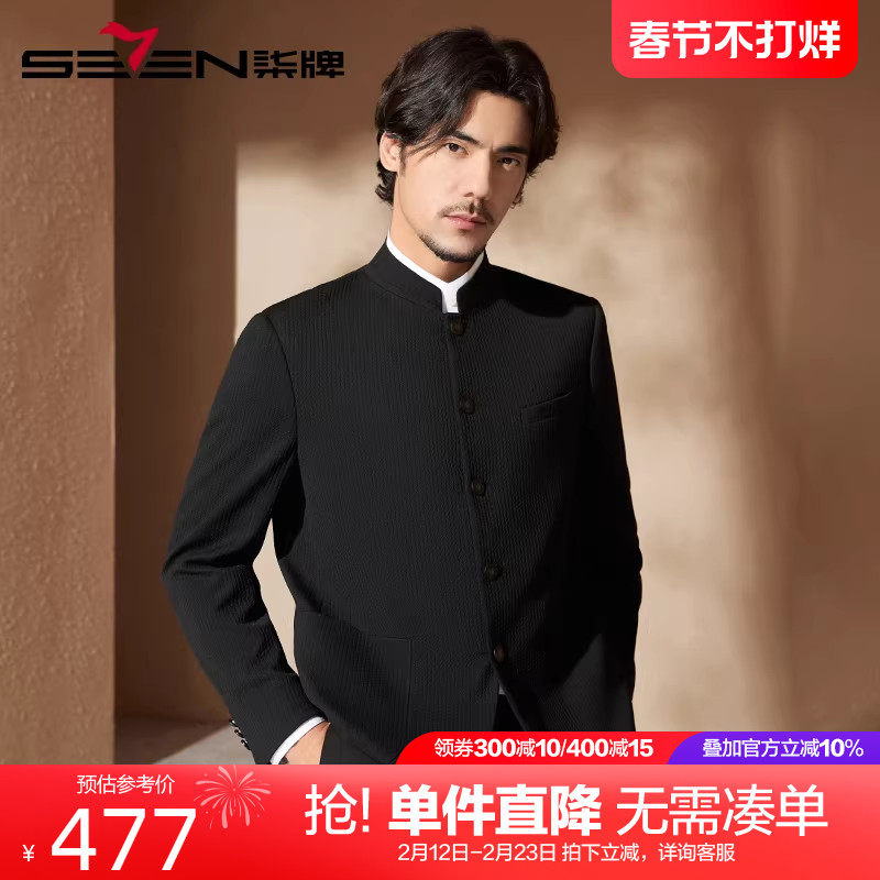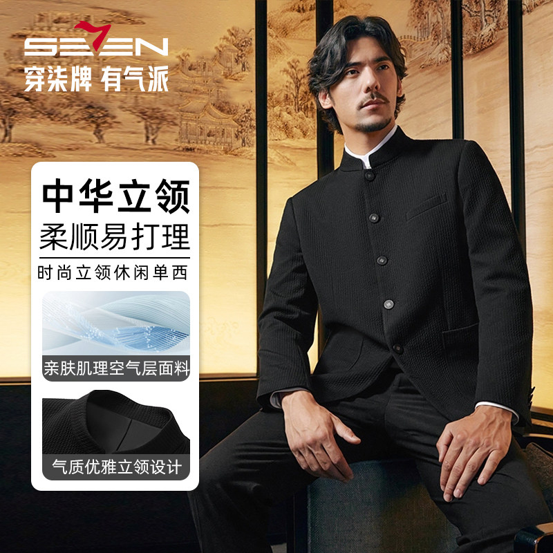 【中华立领/犀牛褶】柒牌男装西服假两件立领犀牛褶商务绅士套装