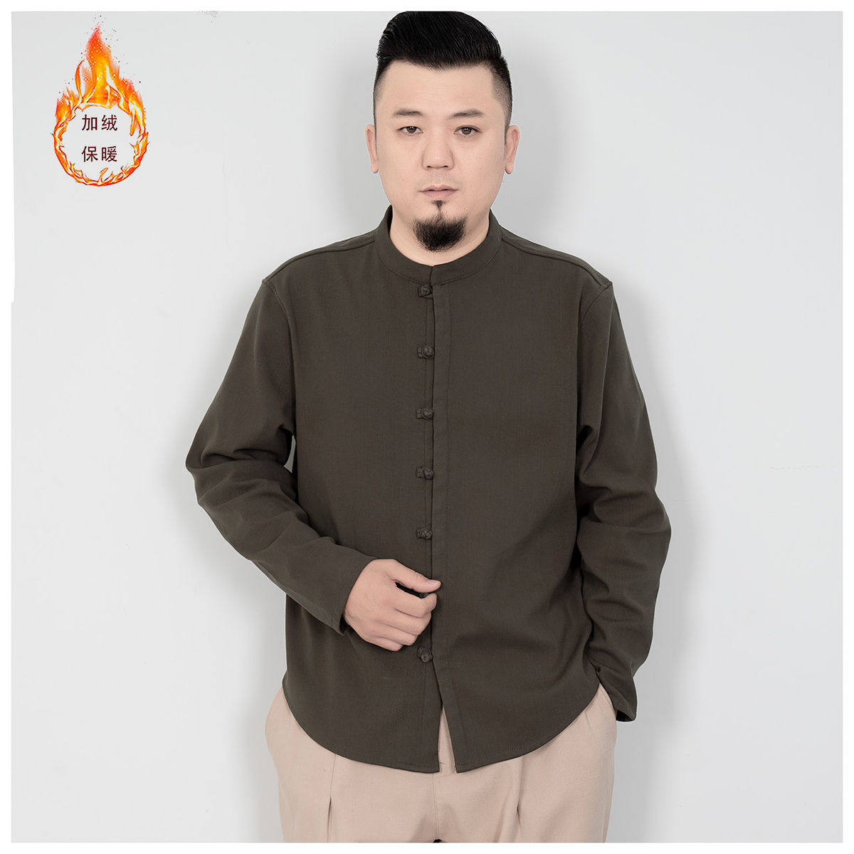 中国风男装冬季盘扣长袖衬衫中式亚麻衬衣中华立领外套唐装居士服