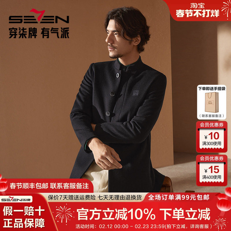 【中华立领】柒牌毛呢大衣男中长款商务绅士秋冬季含羊毛保暖外套