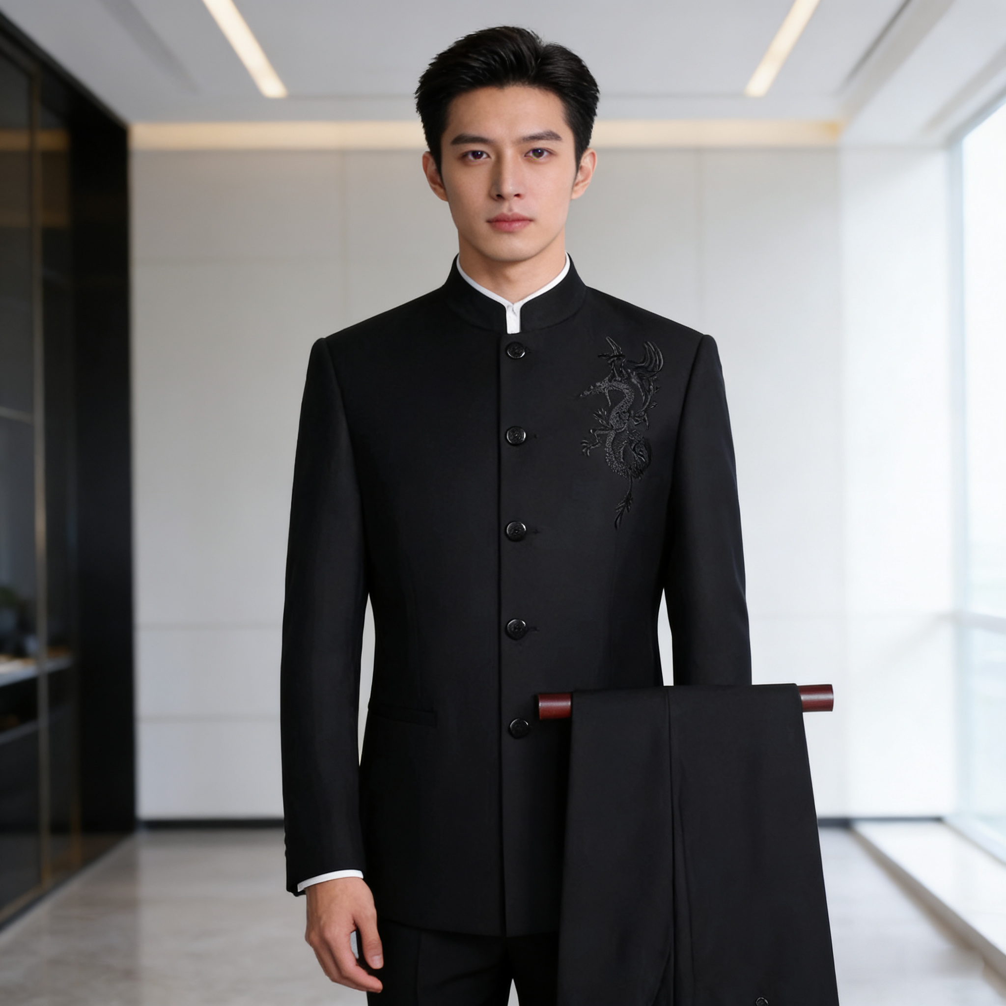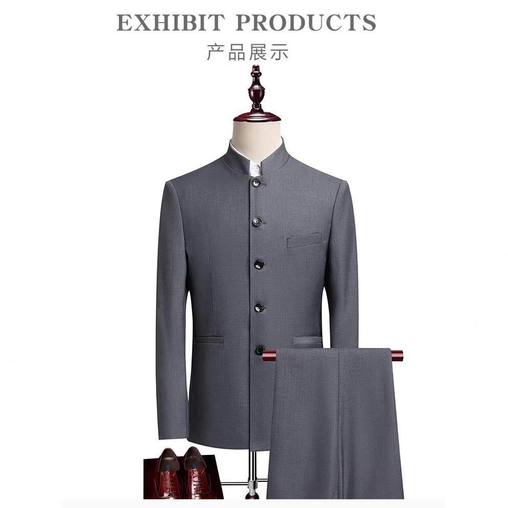 中山装套装男青年修身中华立领西服演出服中式结婚礼服中国风唐装