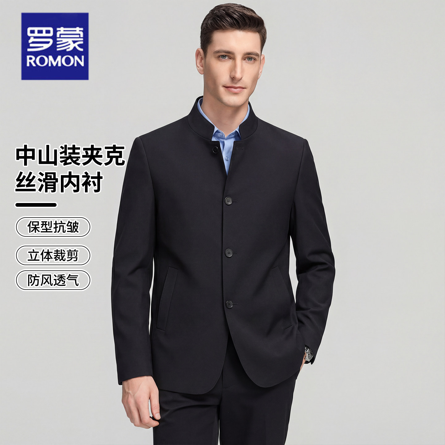 罗蒙2026春季新款中华立领夹克男新中式免烫垂感纽扣男装外套衣服