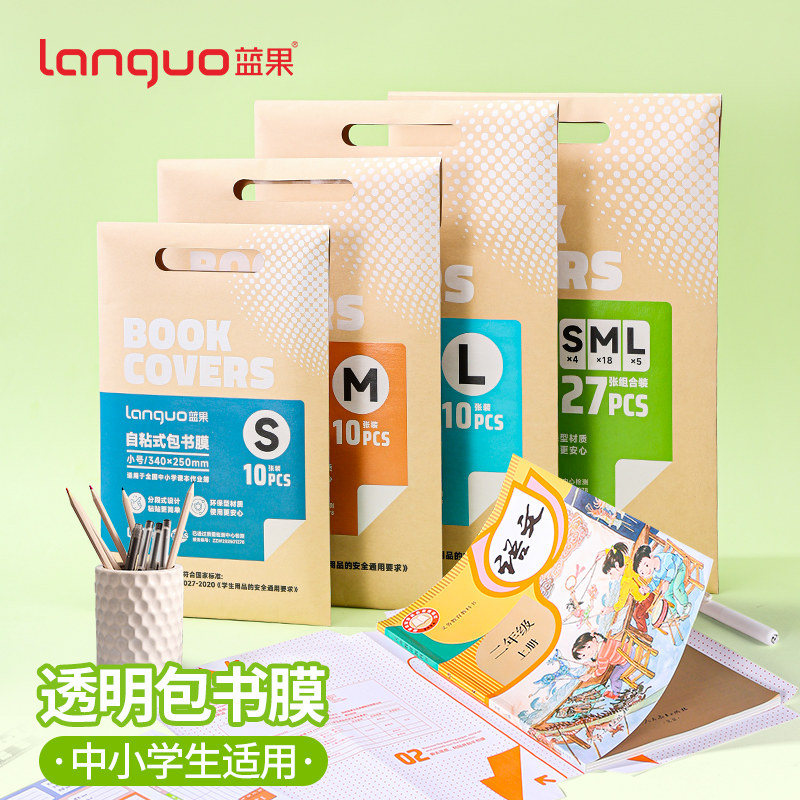 蓝果自粘式包书皮包书膜分段式一体化A4透明书皮16K防水防油防污渍中小学生用课本保护套大中小号易沾无气泡