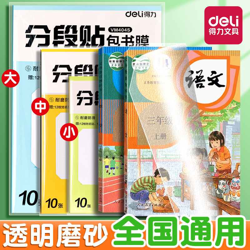 得力分段式包书皮树脂底膜真透明自粘透明磨砂加厚书套包书膜五段式16K小学生一年级A4一体化书壳防水课本