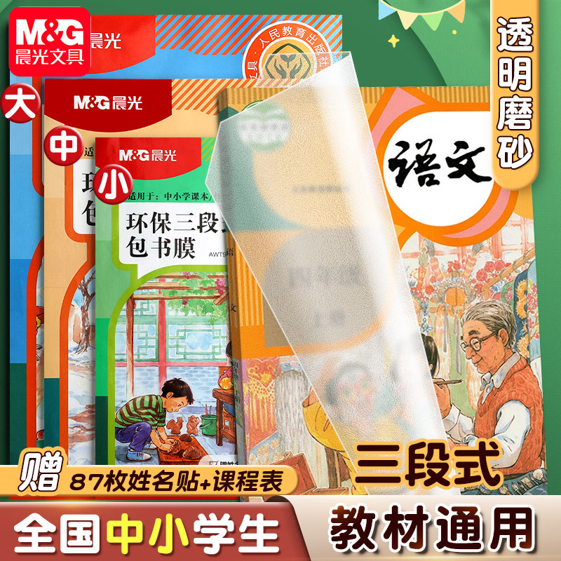 晨光三段式书皮自粘书皮透明磨砂加厚防水包书皮一二年级小学生初高中生课本保护套16K一体化书壳包书膜a4等