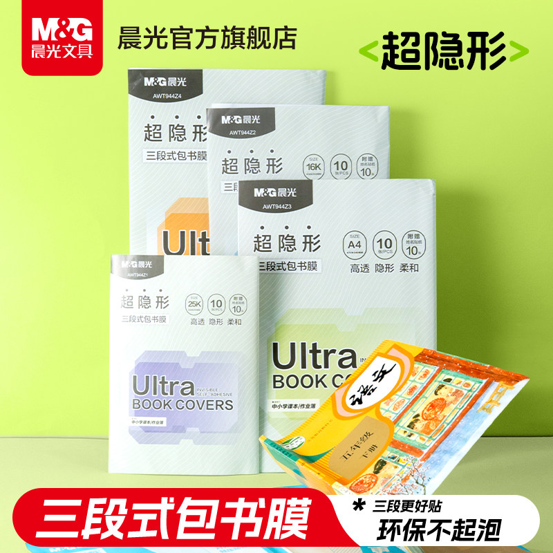 晨光超隐形高透分段式书皮小学生专用自粘书皮亲肤书衣保护套初中生专用16K包书膜书皮纸一体化书壳防水耐磨