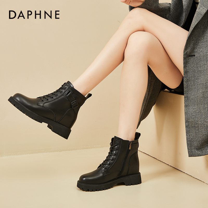 达芙妮时尚马丁靴女2023年秋冬百搭靴子加绒工装靴休闲短靴单靴