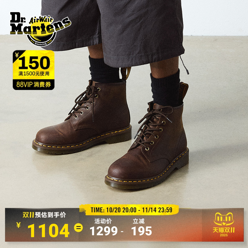Dr.Martens马丁博士101英伦秋冬舒适百搭疯马皮棕色女中帮马丁靴