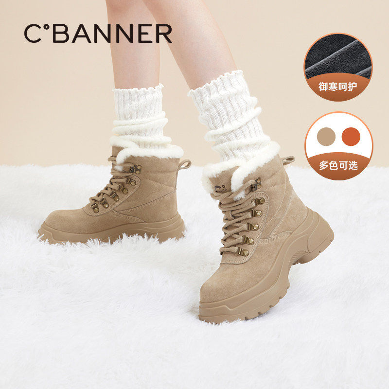 星期六厚底雪地靴女款2025冬新款加绒加厚短靴增高短筒马丁靴棉鞋