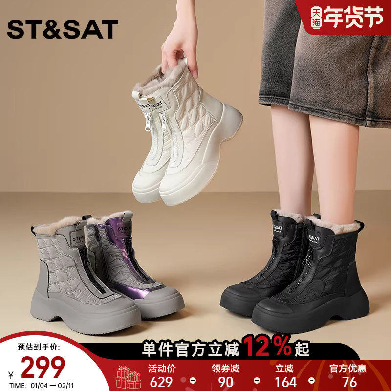 星期六时尚百搭厚底保暖雪地靴女2025冬新款外穿加绒短筒马丁靴ST