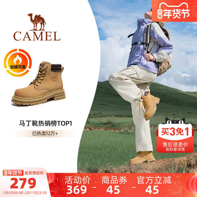 骆驼马丁靴女鞋2025秋季新款工装大黄靴英伦风厚底户外登山短靴子