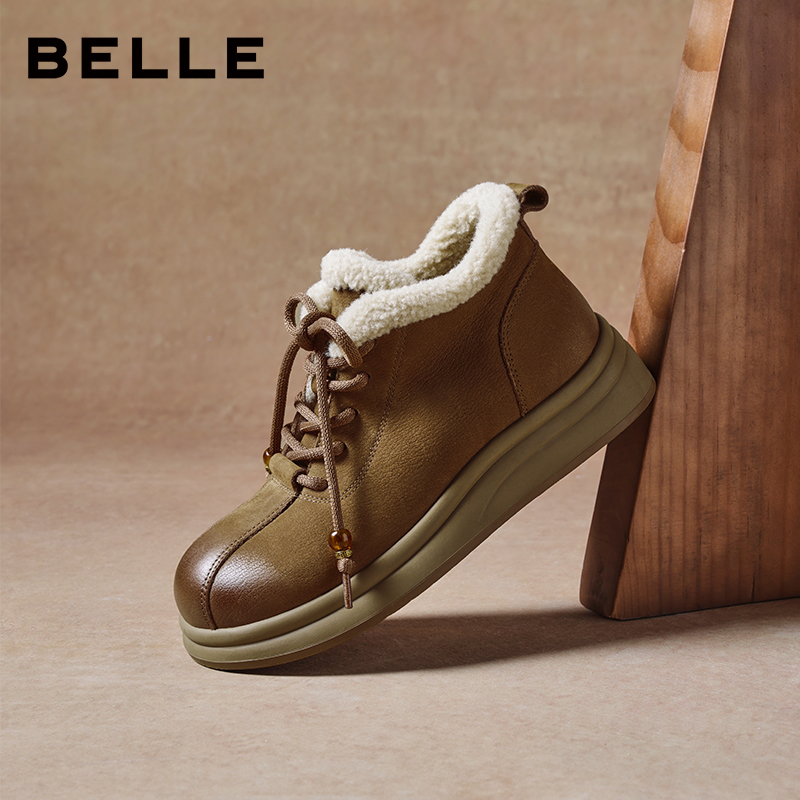 【双11预售】百丽复古厚底高帮鞋女老爹鞋加绒运动休闲工装马丁靴
