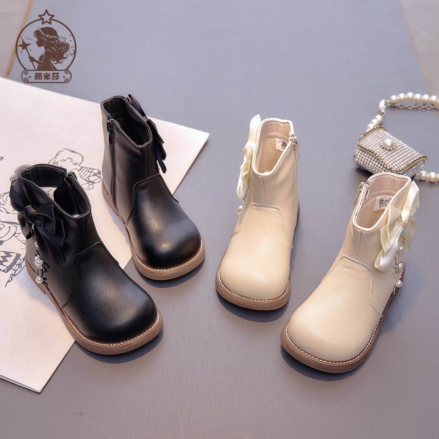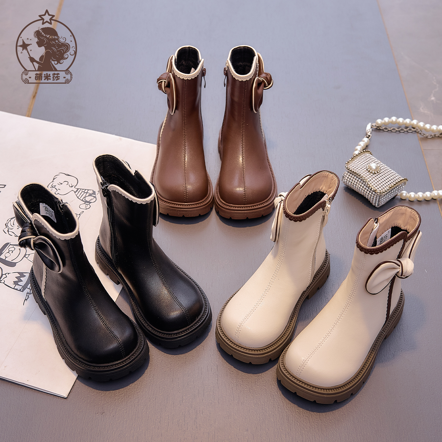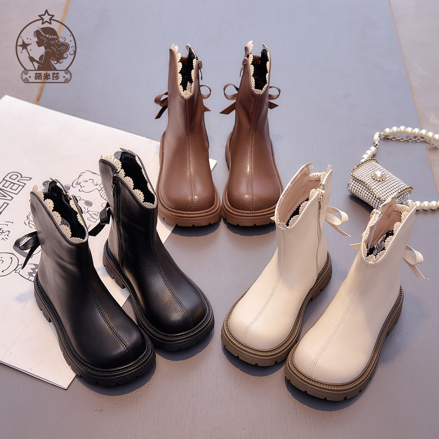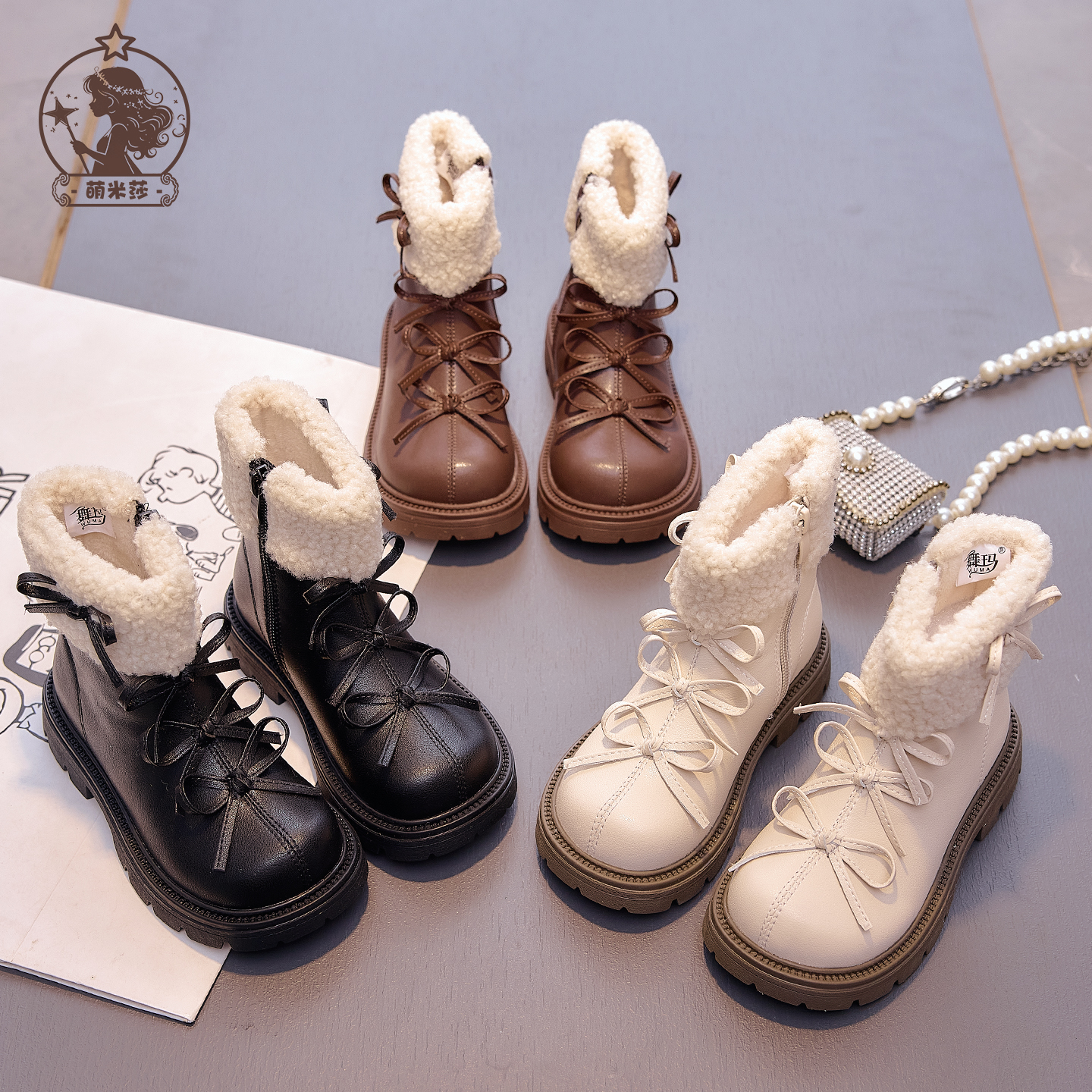 女童鞋子儿童马丁靴2025新款秋冬季小女孩加绒保暖蝴蝶结二棉靴子