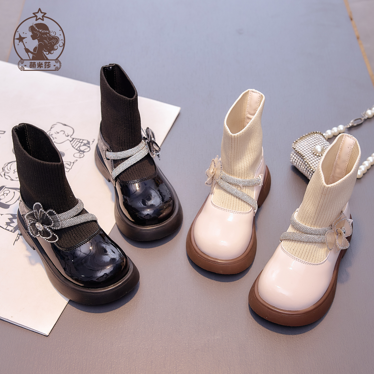 女童靴子2025秋冬新款加绒公主袜靴软底宝宝二棉鞋女孩真皮马丁靴