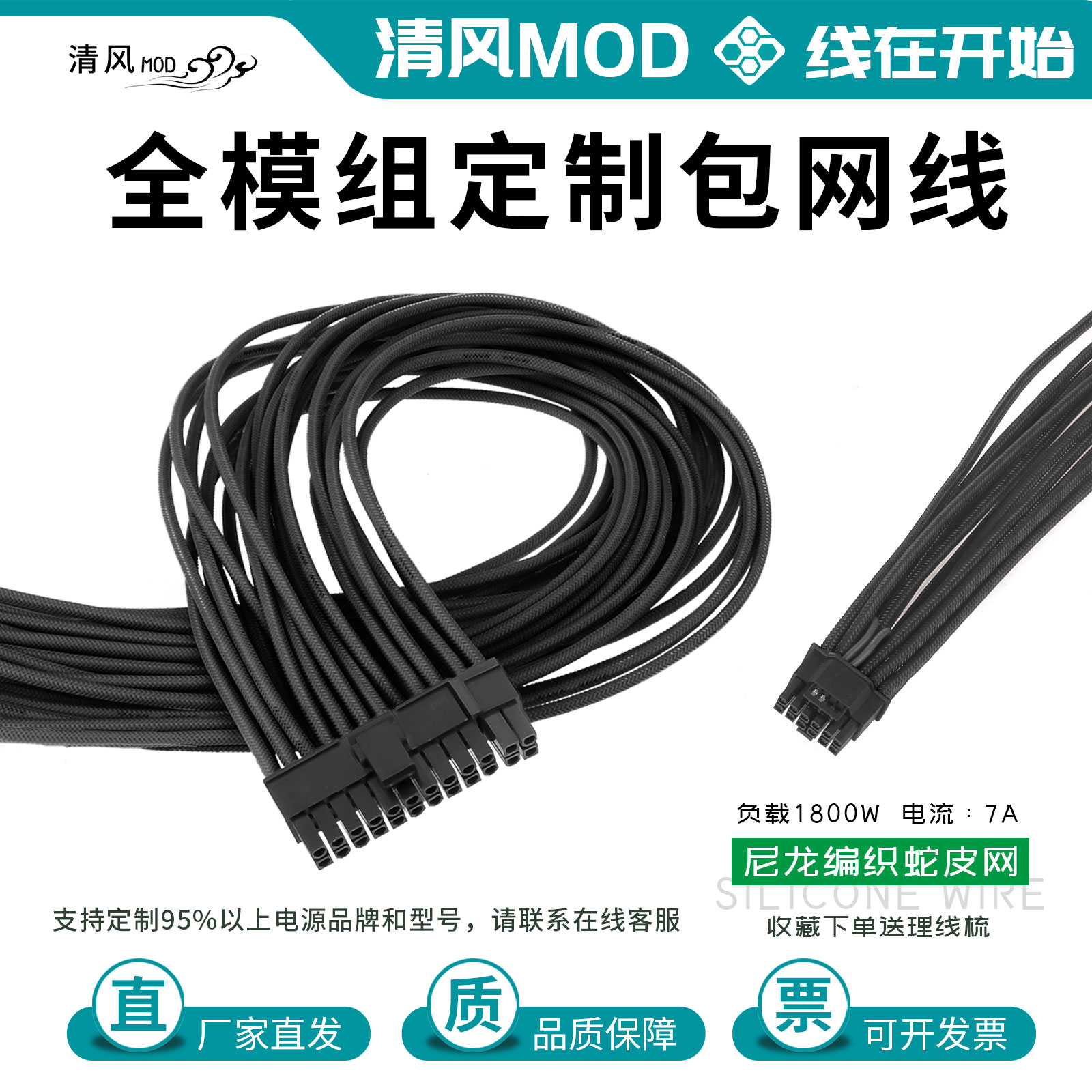 全模组电源定制线镀银硅胶包网压纹线华硕海盗船海韵长城鑫谷定制
