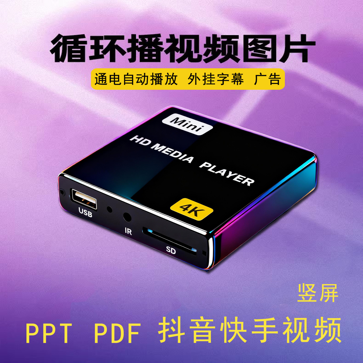 U盘转HDMI插卡4K高清视频播放器广告机音乐图片PPT循环播放自动