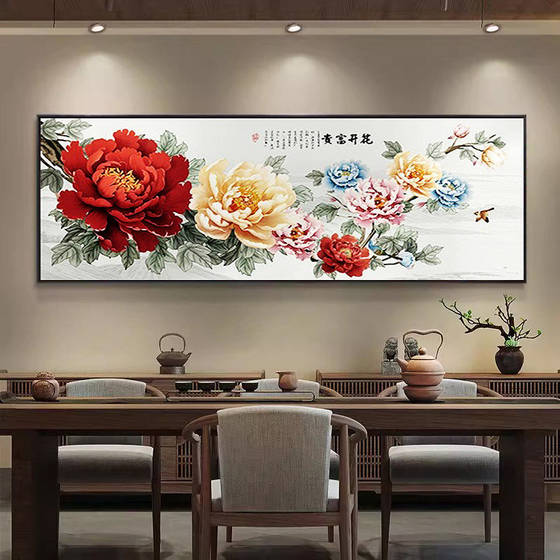 2026年中式牡丹花刺绣钻石画客厅装饰画手工绣花大幅挂画富贵花开