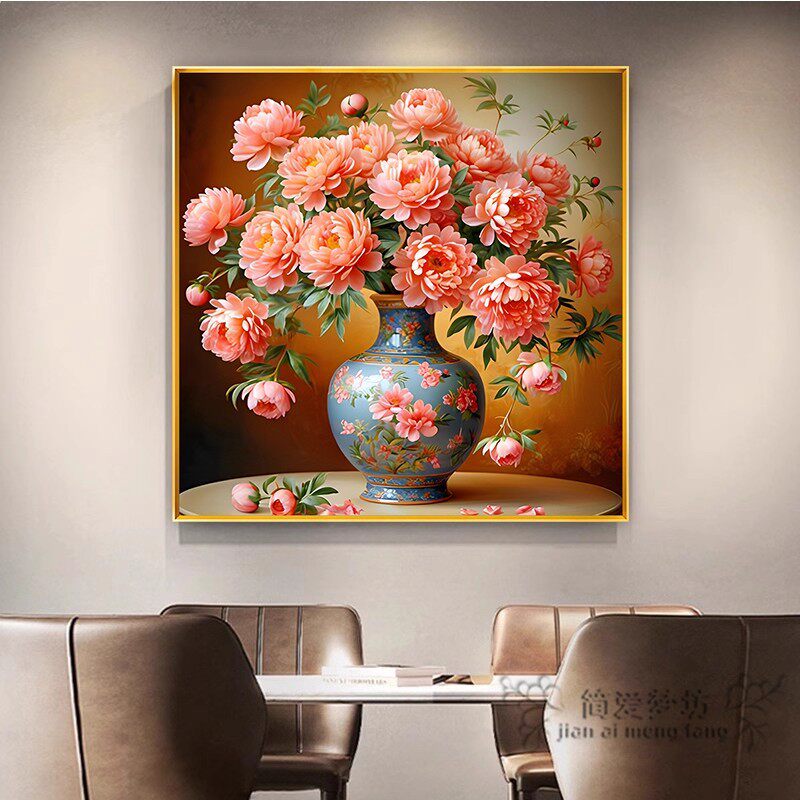 2023新款方形DIY方钻满钻钻石画贴钻钻石绣花开富贵粉色牡丹花七