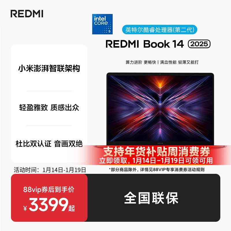 小米REDMI Book 14 2025睿标压笔记本电脑学生商务办公红米官方旗舰店