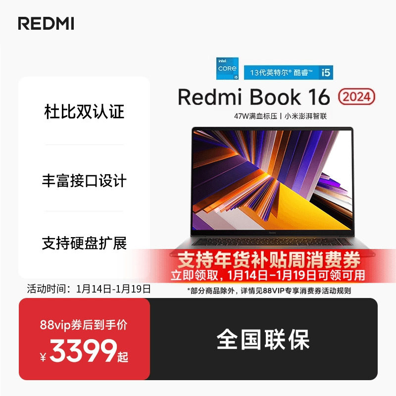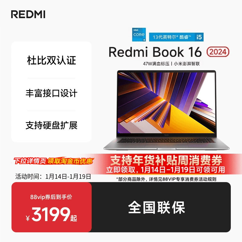 小米RedmiBook 16 2024英特尔酷睿标压轻薄商务笔记本办公商务电脑