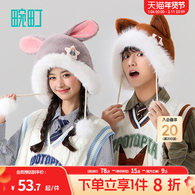 畹町正版迪士尼尼克狐狸朱迪兔子警官毛绒帽子女秋冬季保暖护耳帽