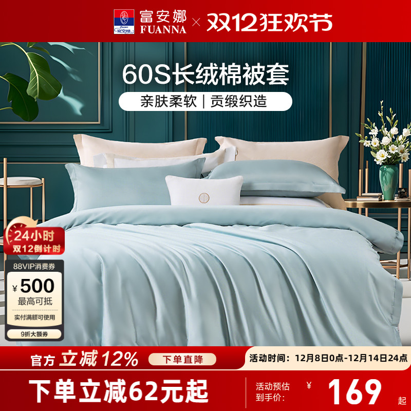 富安娜60支纯棉一件被套全棉长绒棉学生宿舍单件被套单人被罩床品