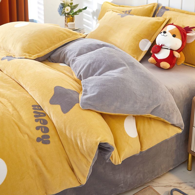 A类牛奶珊瑚绒四件套冬季加绒床上被套加厚被罩法兰绒单人三4件套