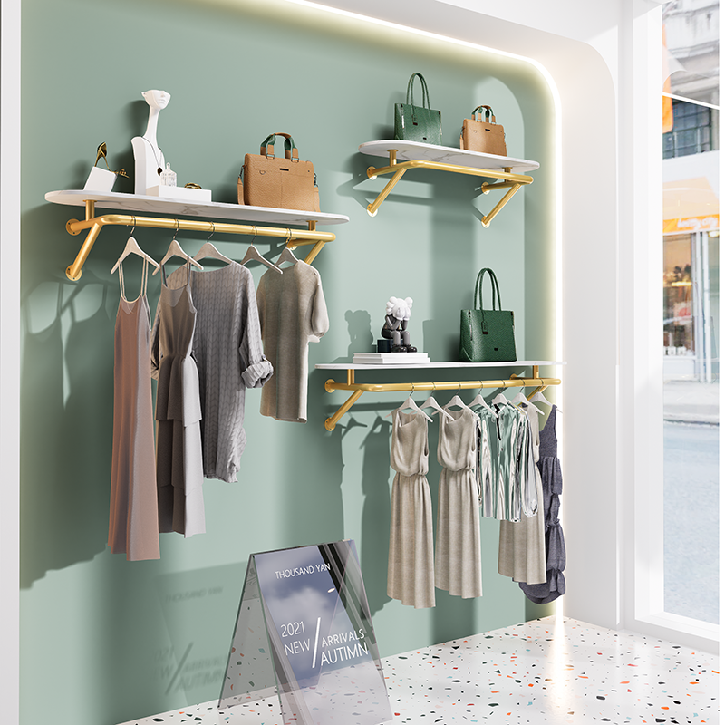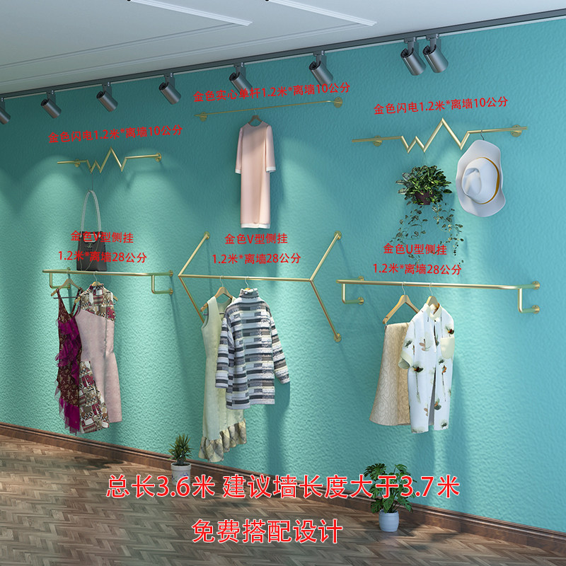 服装店展示架上墙侧挂金色壁挂童装墙上挂衣架女装店货架简约实木