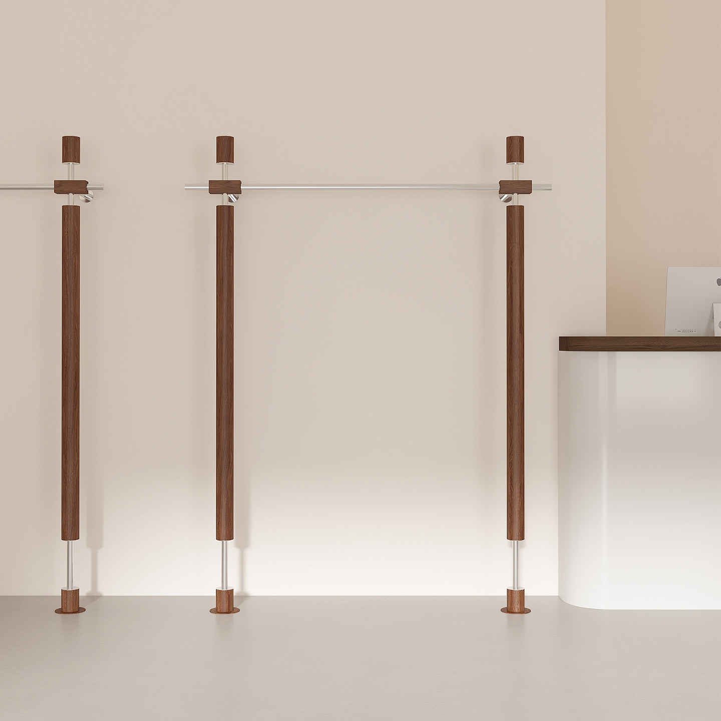 服装店展示架上墙不锈钢仿胡桃木货架陈列架女装买手店专用挂衣架