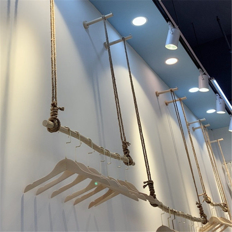 服装店展示架上墙中古风女装店挂衣架不锈钢原木色陈列架专用道具