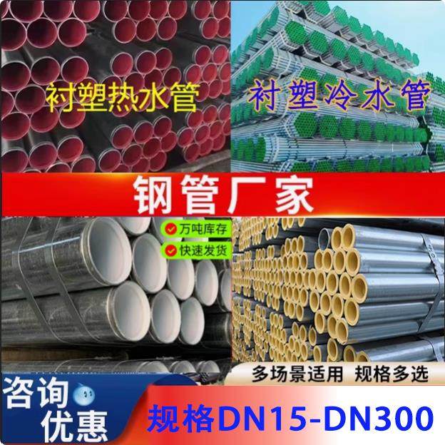 衬塑管DN25钢塑复合管DN50自来水管镀锌钢塑给水管钢塑管衬塑钢管