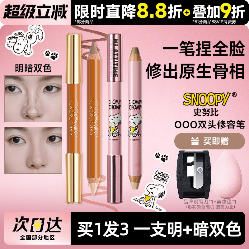 - 双头修容棒遮瑕阴影棒提亮棒立体防水加强侧影脸部修容笔高光棒膏
