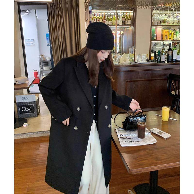 黑色大衣女中长款2024流行新款韩版胖mm宽松呢子加厚大码毛呢外套