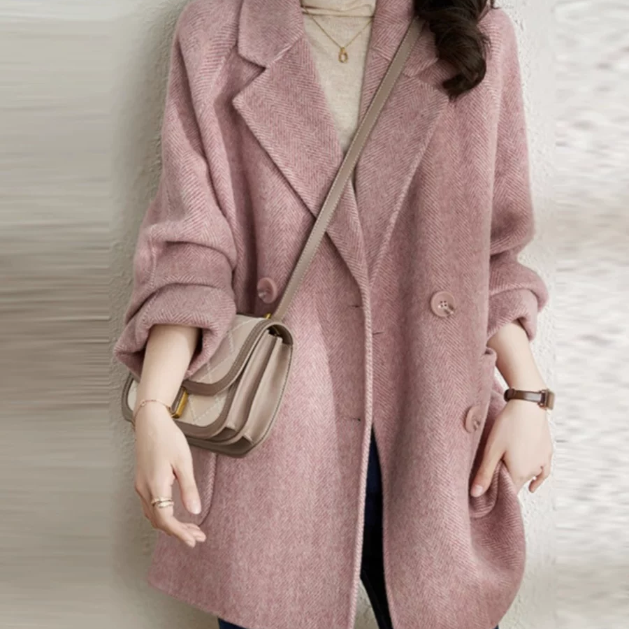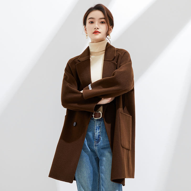 秋冬新款纯羊毛双面绒呢子大衣女中长款宽松大码韩版毛呢外套时髦