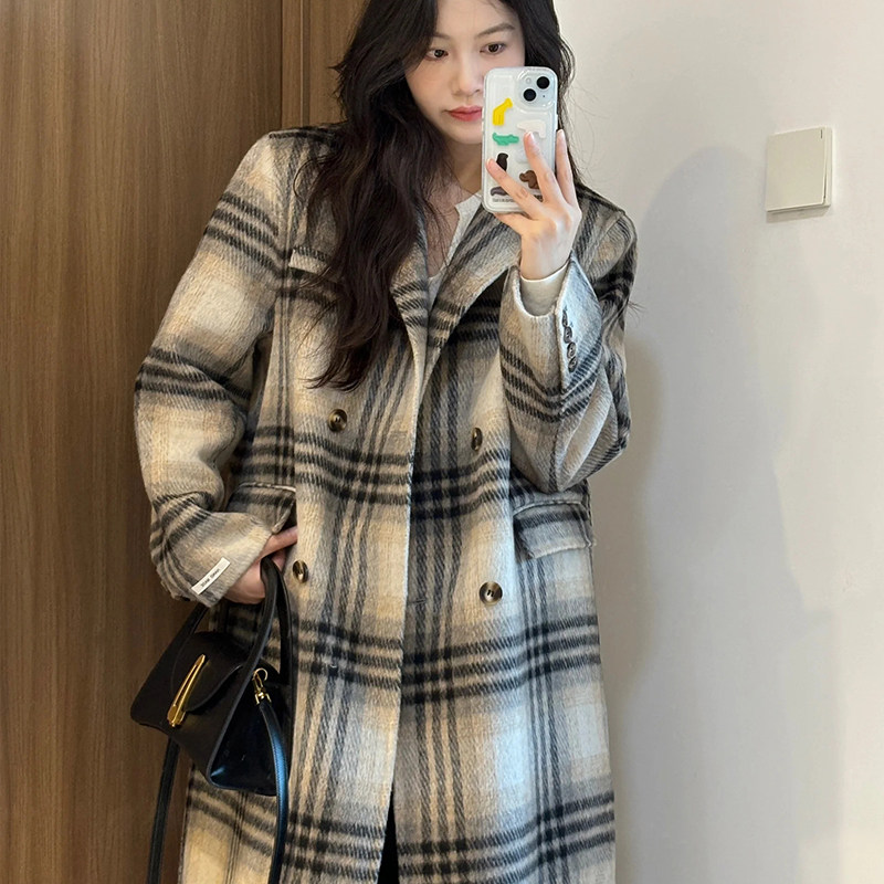 流行格子毛呢大衣女中长款2025秋冬新款宽松大码韩版显瘦呢子外套