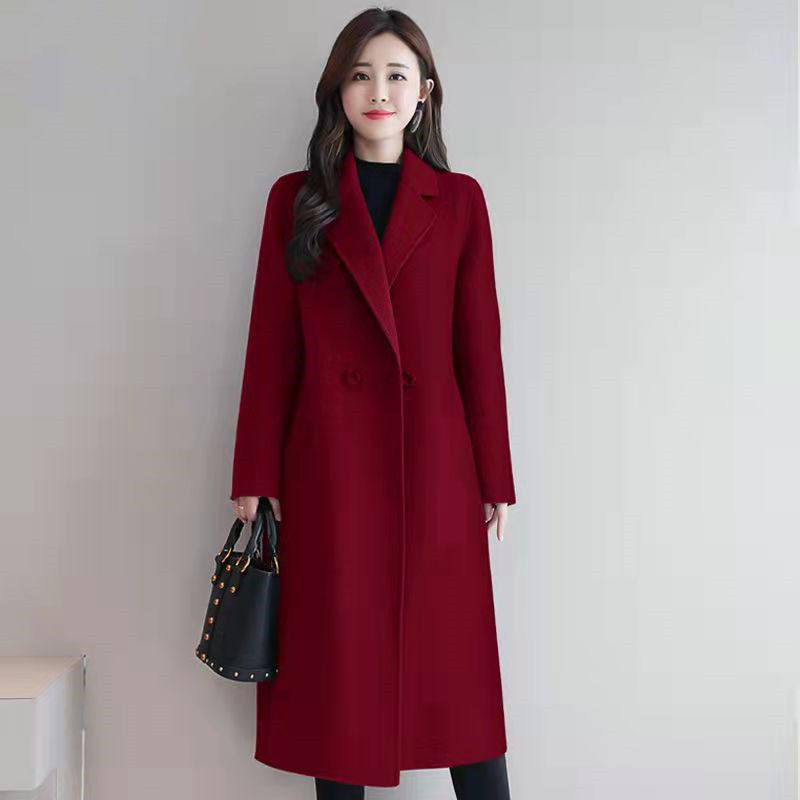 2025秋冬新款中长款韩版红色呢子结婚大衣女零羊绒宽松双面呢外套
