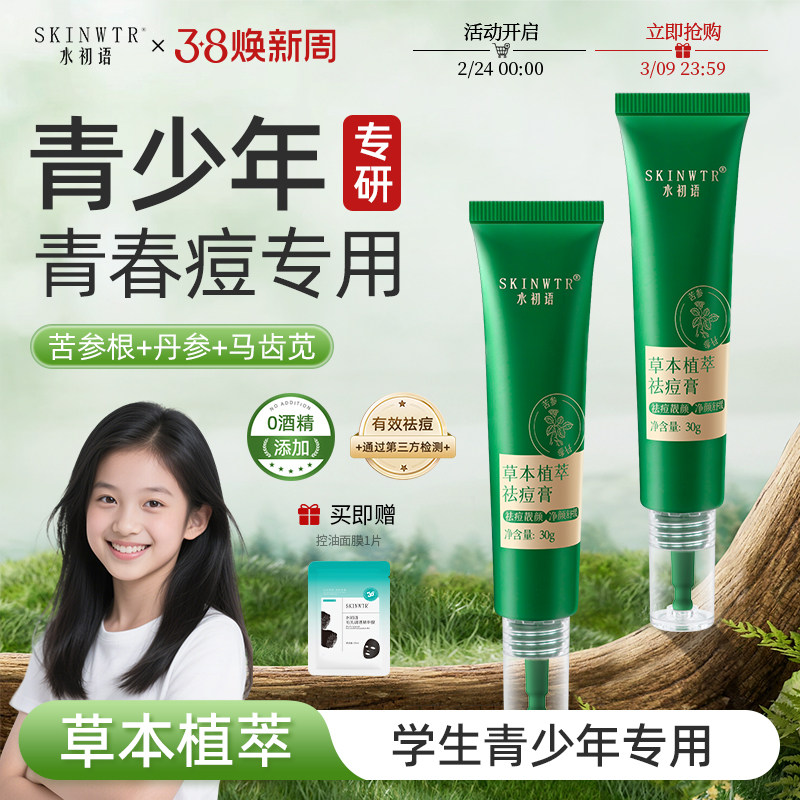 水初语草本植萃祛痘膏青少年淡化痘印修护粉刺多效舒缓学生青春痘
