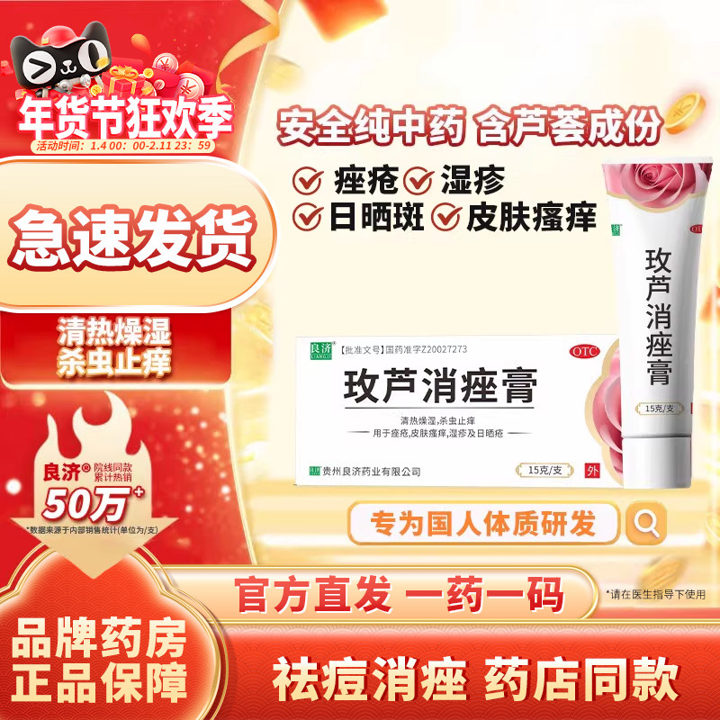 【良济】玫芦消痤膏15g痤疮祛痘药膏纯中成药青春痘植物保湿敏感