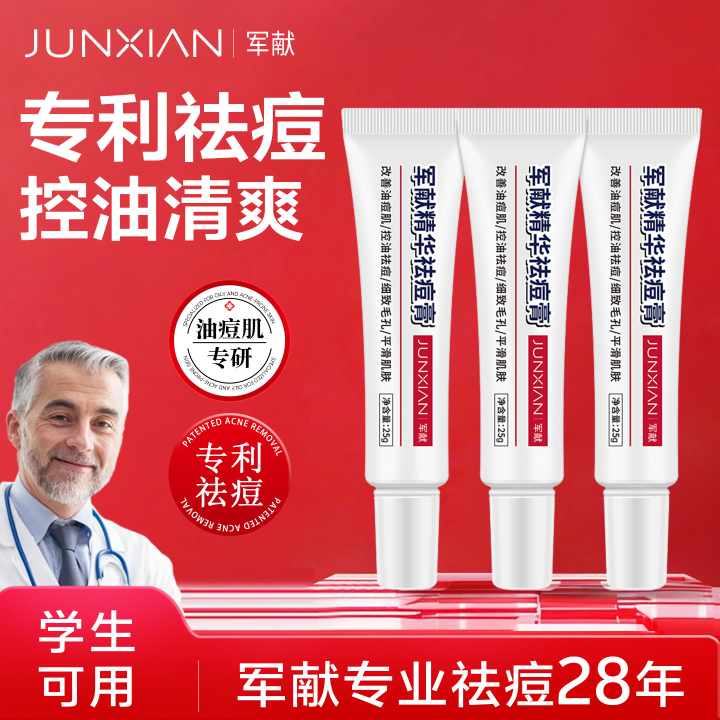 军献益肤霜官方正品青春痘祛痘膏男女学生祛痘面霜修复祛痘霜痘印