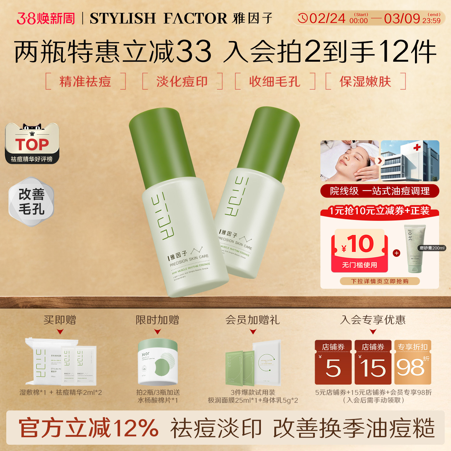 【店铺爆款】雅因子sty小绿瓶精华水杨酸改善痘痘青春痘温和祛痘