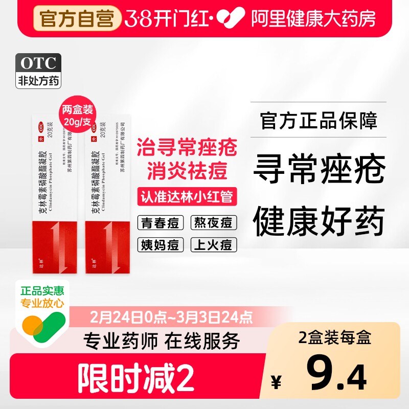 达林克林霉素磷酸酯凝胶祛痘软膏痤疮外用青春痘苏州红肿20g官方