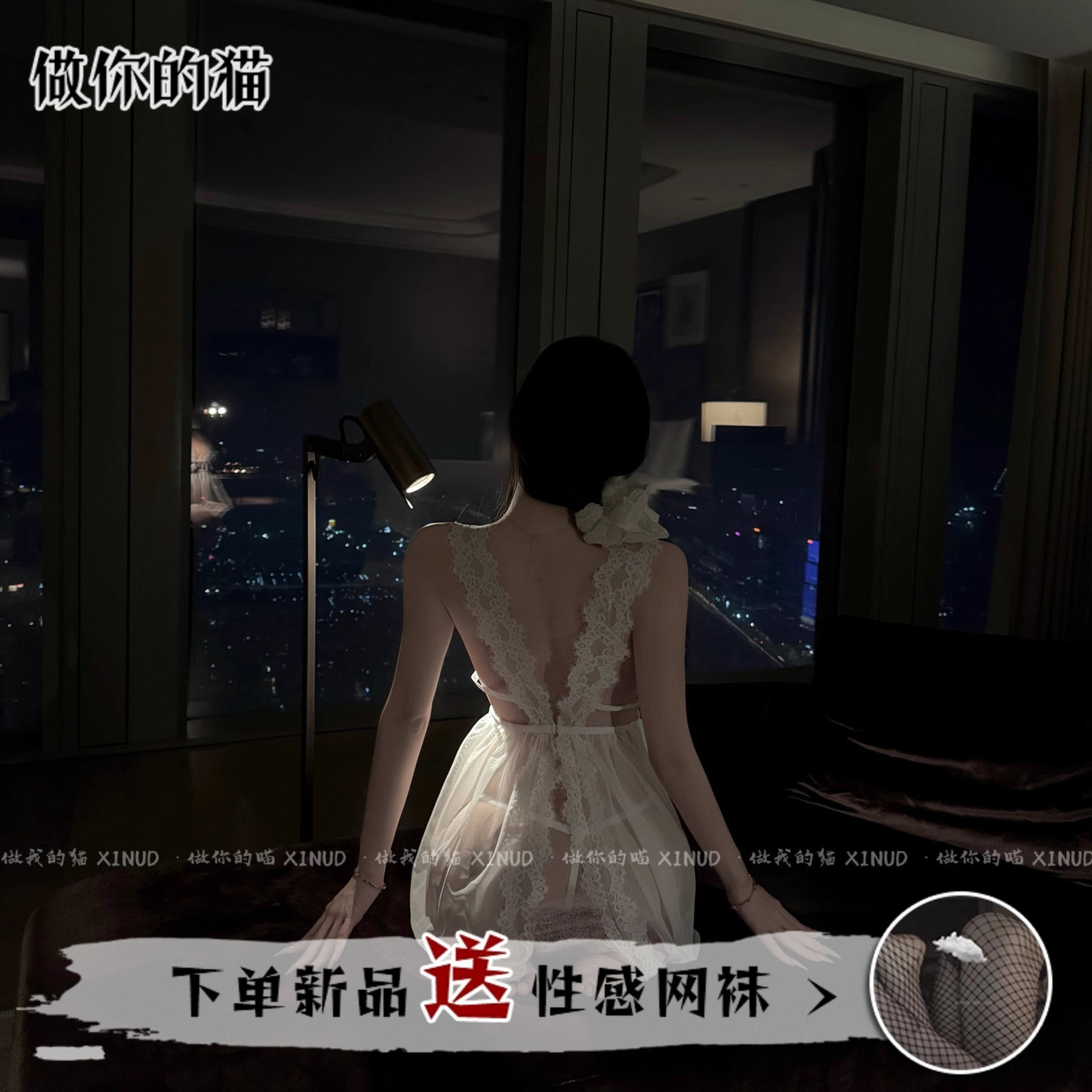 「LA」裙摆下的瘾*透视性感纯欲荡领显瘦网纱水溶花蕾丝吊带睡裙