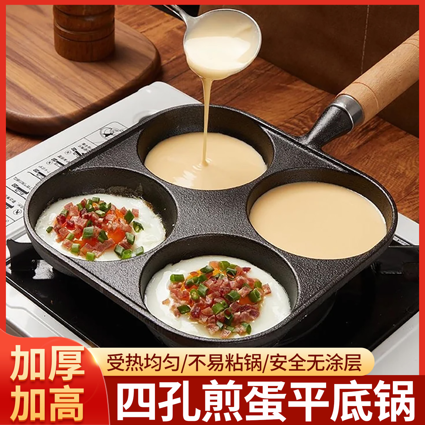 煎蛋锅铸铁加高加厚四孔煎锅鸡蛋汉堡模具无涂层不易粘锅早餐煎饼