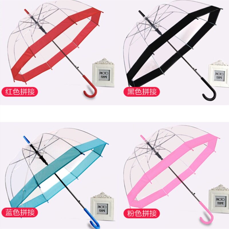 彩色大号透明伞 长柄伞 自动直杆雨伞 广告伞 厂家可印logo