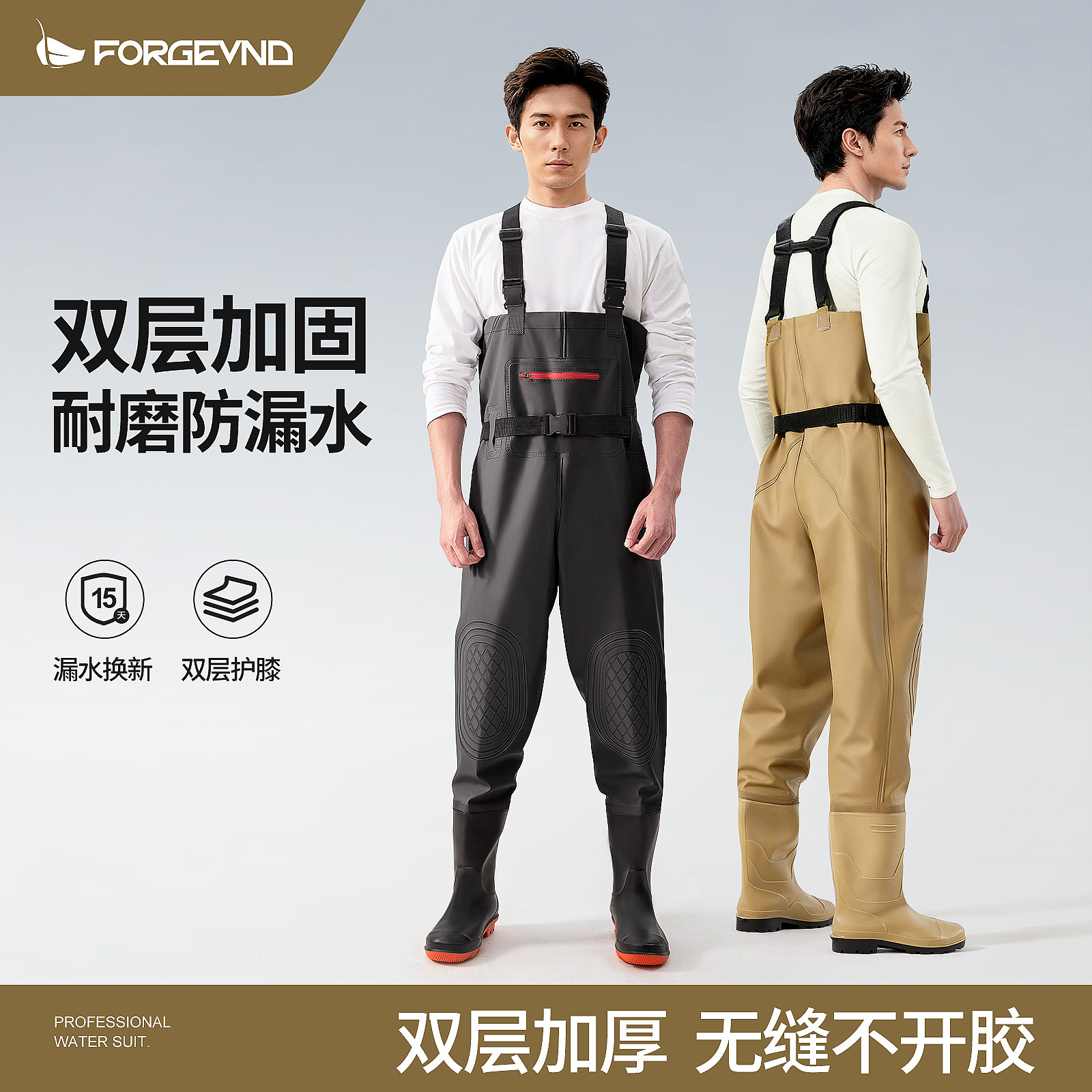 加厚半身下水裤齐腰超轻防水雨裤带雨鞋皮叉抓鱼水库涉水服男连体