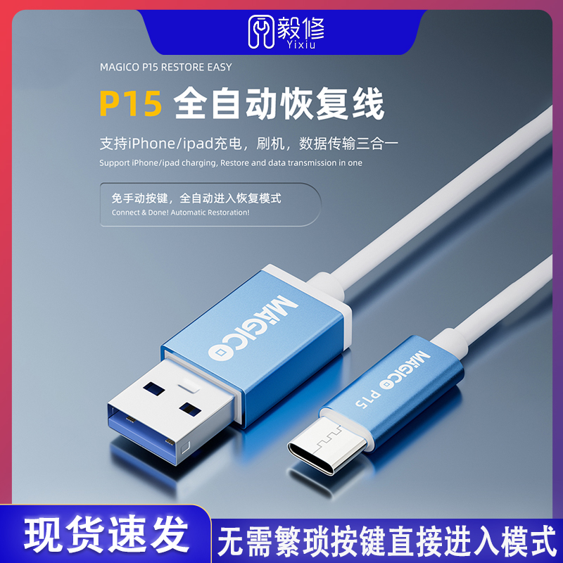 蚂蚁昕苹果iphone15刷机线6-15PM自动进恢复模式数据线刷机工程线