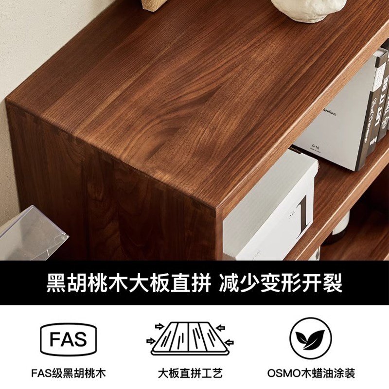 悠日书柜 致家家居|客厅落地防尘实木书柜带门侘寂风组合展示柜