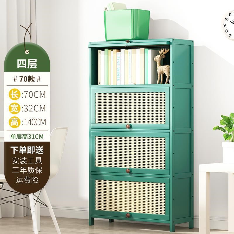 现货速发实木书柜带门置物柜玻璃日式家具藤编储物柜杂志柜简约边